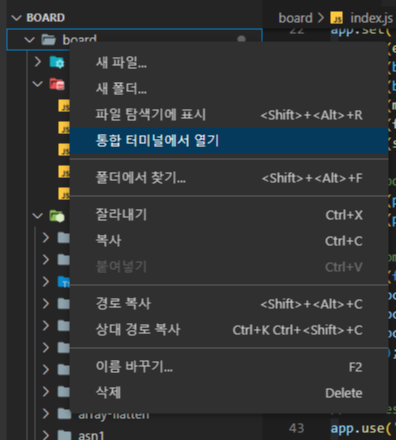 우클릭-통합 터미널에서 열기를 누르면 해결된다.