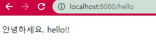 그러나 hello하이퍼링크를 뜨면 여전히 에러가 뜬다.... 저 부분을 고치기 위해 컨트롤러를 작성한다.