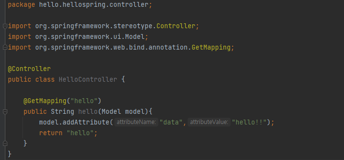 이 데이터를 담은 값을 hello html에 전달한다.