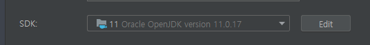 NO SDK라고 되어있는 것을 JDK 11로 변경해주었다.