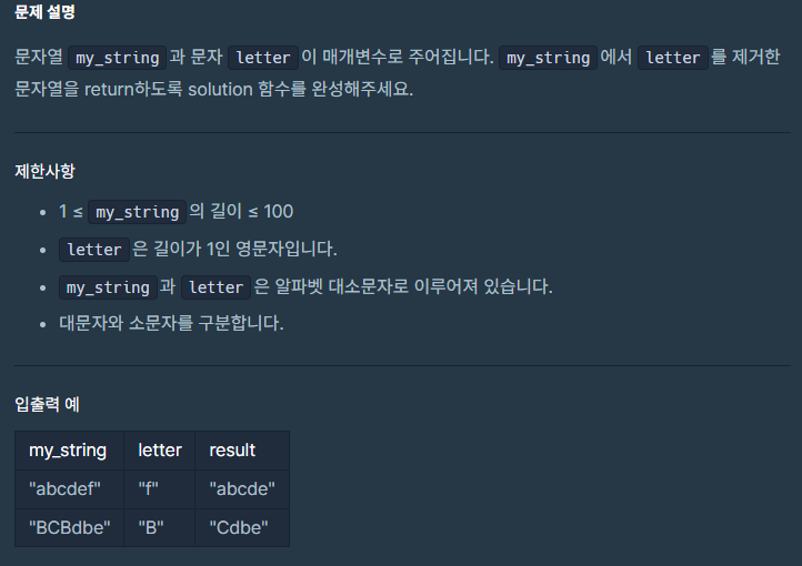 letter과 같은 글자인지 확인한 후 같은 글자라면 해당 값을 0으로 만든다.