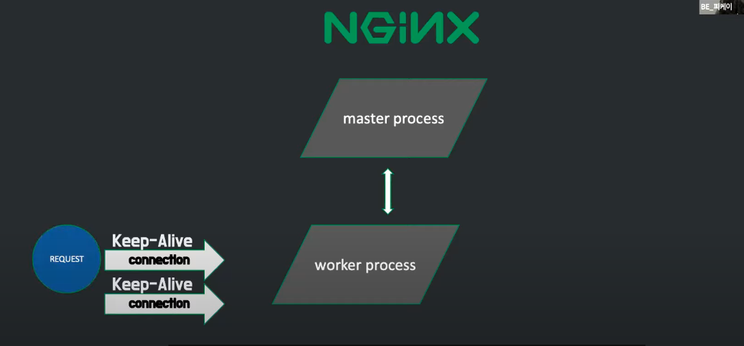 커넥션이 형성되었다고 해서 워커프로세스가 해당 커넥션 하나만 담당하지는 않고, 형성된 커넥션에 요청이 없으면 새로운 커넥션을 형성하거나 이미 만들어진 커넥션에 들어온 요청을 처리한다.