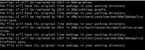 OS마다 줄 바꿈에 대한 문자열이 다르기 때문에 git에서 어느 쪽을 선택해야 할지 경고 메시지를 띄워 준 것이라고 한다.