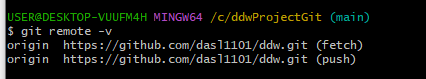 잘 변경되었는지 확인하려면 git remote -v 를 입력해 확인할 수 있다.