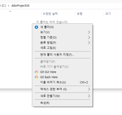 저장소로 하고 싶은 폴더에서 우클릭을 눌러 Git Bash Here를 클릭한다.