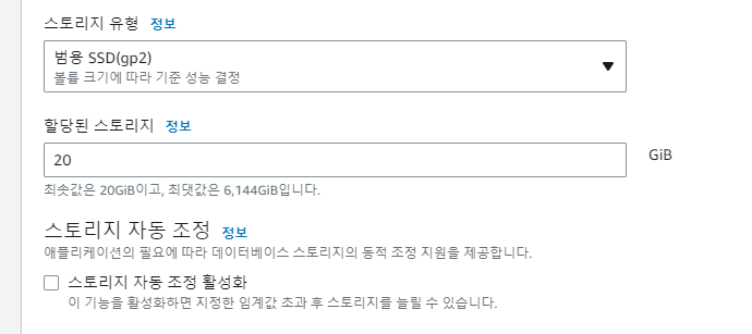 스토리지 자동 조정 활성화의 경우도 과금이 발생할 수 있어 체크해제해준다.