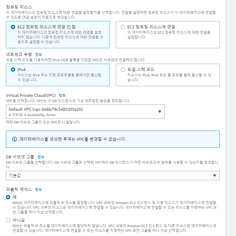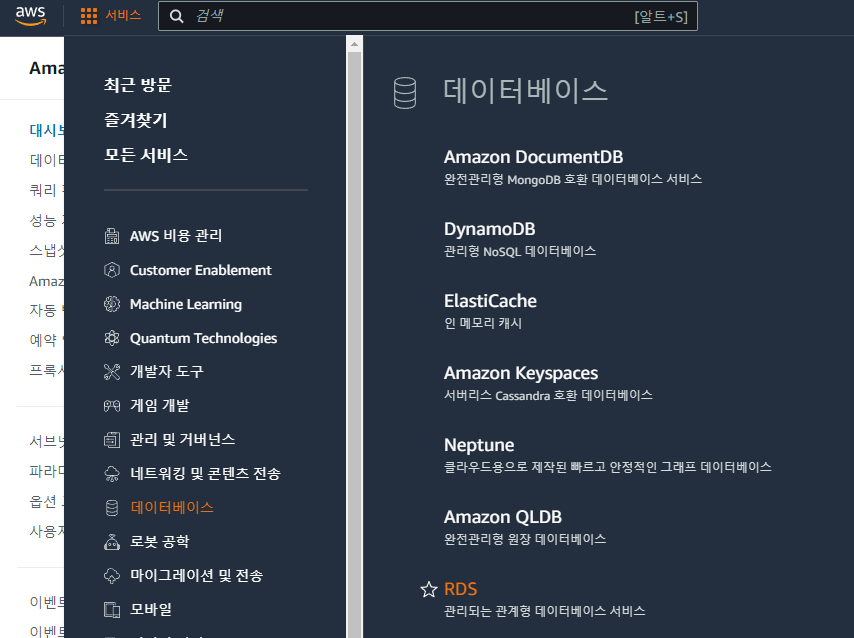 EC2에 DB를 설치하고 모니터링, 알람, 백업 등등을 직접 하는 것은 너무 어렵고 번거롭기 때문에 AWS에서 지원하는 RDS를 사용해서 EC2에 연결하기로 했다.