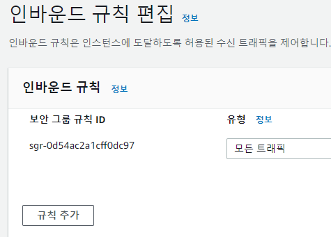 인바운드 규칙 편집 클릭-> 규칙 추가 클릭