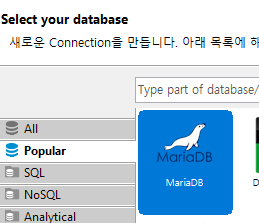 MariaDB를 사용할 것이기에 MariaDB를 선택해준다.
