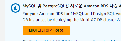 이 외에는 기본설정으로 두고 데이터베이스 생성을 클릭한다.