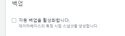 과금이 발생할 수 있으니 자동백업 활성화도 체크해제한다.