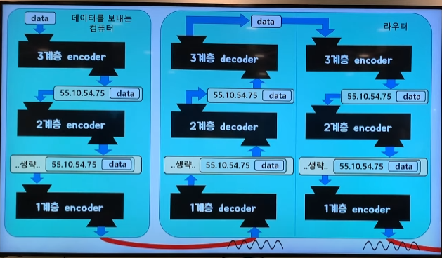 - 0,1의 나열을 아날로그 신호로 바꿈(encoding) / 아날로그 신호를 0,1의 나열로 해석(decoding)
