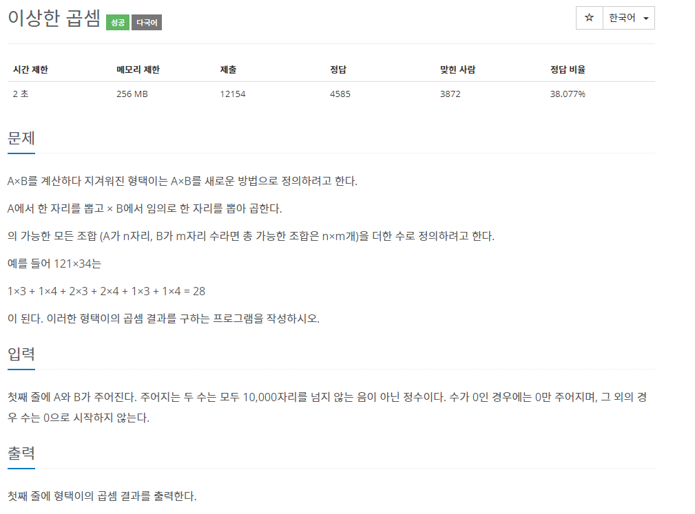 result += Long.parseLong(A.charAt(i)+"") * Long.parseLong(B.charAt(j)+"");